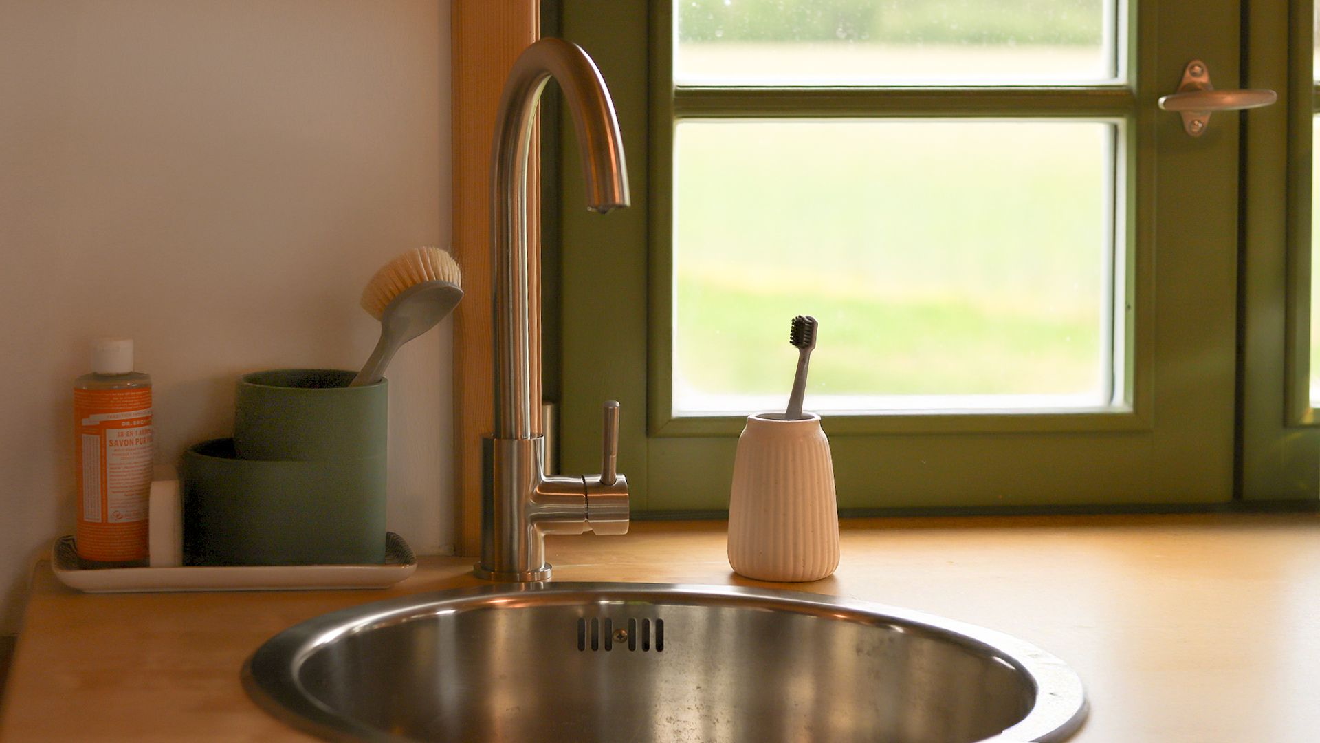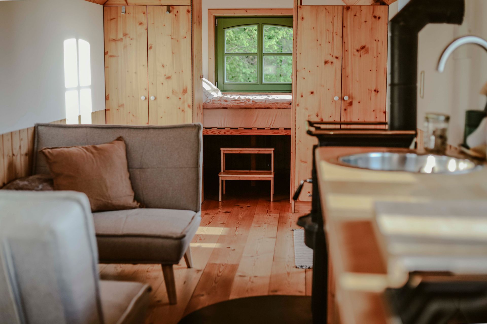 Bertha ist ein gemütlicher Bauwagen mit Blick auf Natur und in die Weite.